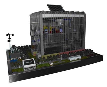 1、仿真沙盤,包括溫室大棚培育單元、澆灌單元、遮陽卷簾單元、食品運輸加工單元等模擬場景。