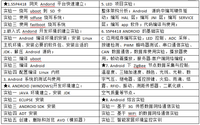 7、基于 WiFi/BT 的網絡通信開發(fā):可以開展 WiFi/BT 通信原理、WiFi/BT 模塊驅動開發(fā)、WiFi/BT 模塊原理設計、WiFi/BT 互聯(lián)網接入、WiFi/BT 移動通信與物聯(lián)網應用開發(fā)等。