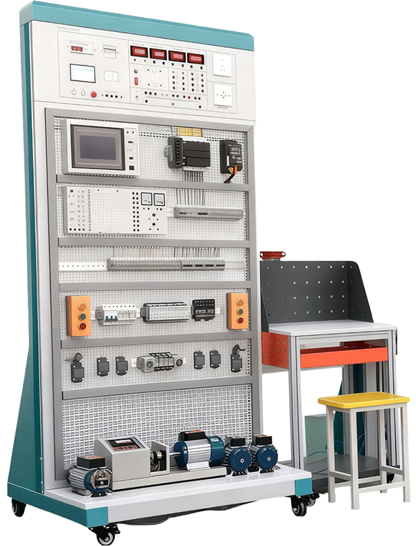 電氣及電機(jī)控制實(shí)訓(xùn)考核裝置、機(jī)電一體化電氣控制綜合實(shí)訓(xùn)臺包含集成多種電氣模塊(如儀表、PLC、觸摸屏、控制按鈕、接線端子等)的實(shí)訓(xùn)掛板,電機(jī)及傳動機(jī)構(gòu),配套的實(shí)驗(yàn)臺桌、座椅,以及用于安裝機(jī)械部件的多孔支架。
