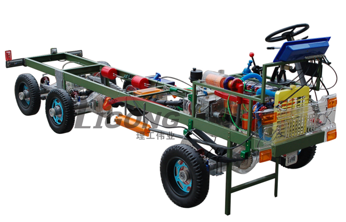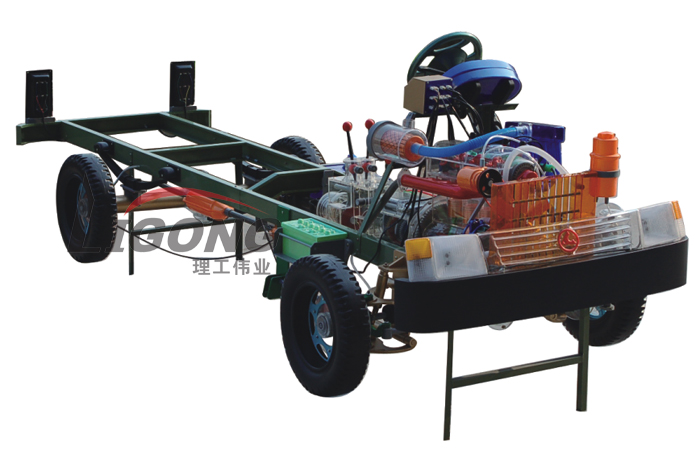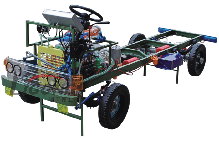 透明汽車整車模型選用透明有機玻璃制作,內中部件均以硬質塑料料加工,用 螺絲固定在金屬高溫烘漆而成的車架上。各總成部分都以壓模成形加 工,代替過去膠粘合的方法,使產(chǎn)品在強度上有很大提高。發(fā)動機總成用電機驅動,在油門處設有調速裝置,能演示發(fā)動機轉速高低。離合器分離明顯,操縱靈活,離合器外殼整體壓模而成,變速箱和各檔齒輪用各種顏色表示,換檔靈活,手制動美觀。后橋外形壓模而成,內中主減速、差速轉動自如,輪轂剎蹄壓模成型,剎蹄可調節(jié),前橋輪鼓可調整,轉向裝置以及電瓶、油箱、水箱,制動管路分布清楚一目了然。電路采用對插件前后分布,燈架、風窗、儀表板、后燈架用透明有機玻璃壓模成整體美觀逼真。