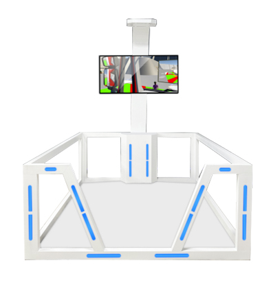 1、包含顯示屏幕、主機、頭戴設(shè)備、行走平臺、護欄等。