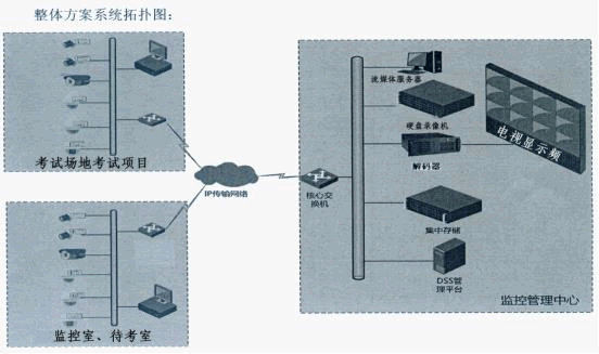 根據(jù)公安部123號部令標(biāo)準(zhǔn),考試場地各考試項目及考場全景需實時視頻監(jiān)控,考試場地視頻監(jiān)控系統(tǒng)由視頻管理服務(wù)器、視頻管理軟件、硬盤錄像機、紅外智能球機、槍形攝像機及輔材、線材、電源單元等組成,達到考試場全景實時監(jiān)控的目的