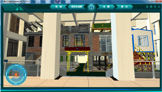 2. 建筑工程虛擬仿真教學(xué)軟件系統(tǒng)可通過漫游模式或點(diǎn)擊對應(yīng)菜單進(jìn)入仿真程序,并在進(jìn)入程序后可進(jìn)行相互切換。