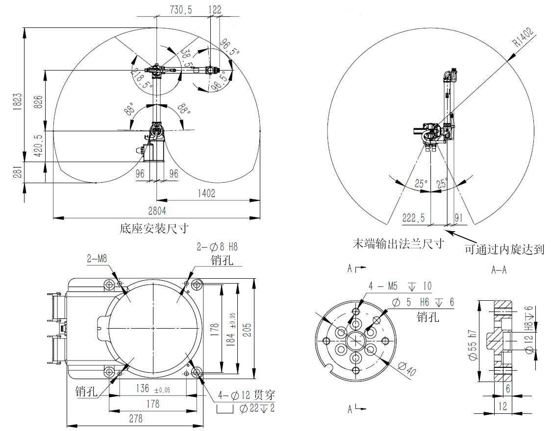 三、工業(yè)機器人運動范圍參數(shù)圖