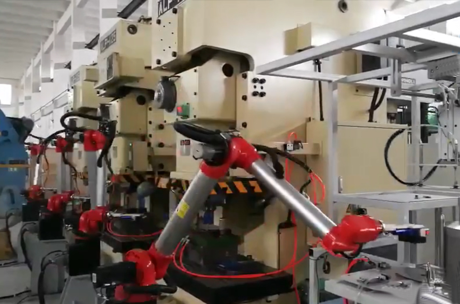 LG-SX系列工業(yè)機器人打破傳統(tǒng)運動方式,進行創(chuàng)新設(shè)計,在通用六軸工業(yè)機器人的基礎(chǔ)上, SX系列工業(yè)機器人新增內(nèi)旋轉(zhuǎn)功能,輕松實現(xiàn)如鉆工中心等間距很小,但又要求機器人臂長大的機器人完成狹小空間工位間連線或搬運。占地面積非常小,運動運動非常靈活并且不占用外部空間,為CNC高速鉆工中心特殊設(shè)計。內(nèi)外雙旋轉(zhuǎn)結(jié)構(gòu),可輕松實現(xiàn)鉆工中心間距600以內(nèi)狹小空間工位間連線或搬運,輕松避讓且速度快。