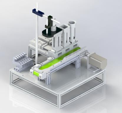 2、自動上料模塊:該模塊由料倉、氣缸、傳送帶、視覺、定位臺組成。自動上料機(jī)可以上三種形狀(圓形、方形、矩形)的物料,每種物料又分兩種顏色(藍(lán)色、紅色),選手通過視覺系統(tǒng)識別物料形狀與顏色來分類物料。