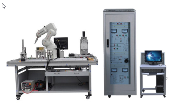 該實訓平臺由三菱RV-3SD六自由度工業(yè)機器人系統(tǒng)、歐姆龍智能視覺檢測系統(tǒng)、可編程控制器(PLC)系統(tǒng)、RFID數(shù)據(jù)傳輸系統(tǒng)、工具換裝單元、四工位供料單元、環(huán)形輸送單元、直線輸送單元、工件組裝單元、立體倉庫單元、廢品回收框、各類工件、電氣控制柜、型材實訓桌、型材電腦桌等組成。