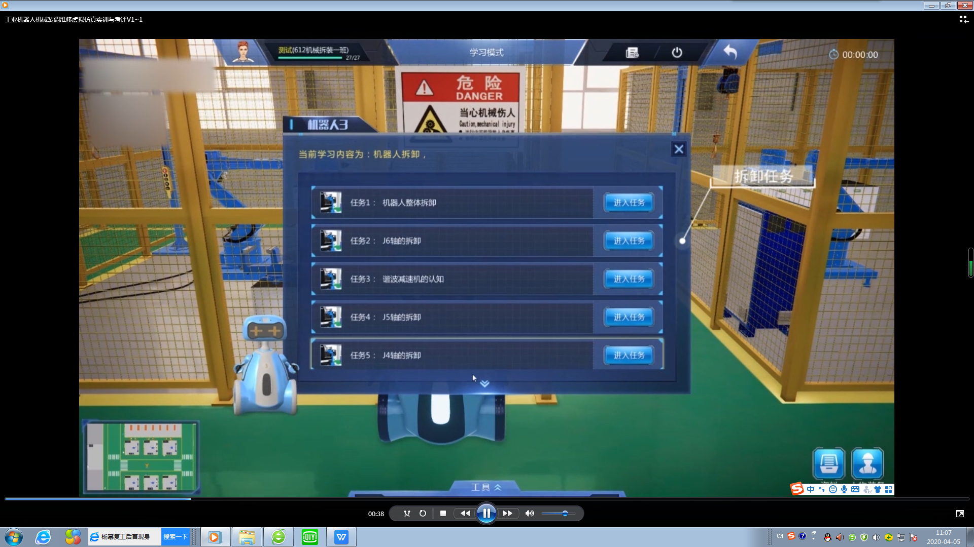 4、學(xué)習(xí)模式教學(xué)實訓(xùn)任務(wù)豐富:機(jī)器人拆裝作業(yè)準(zhǔn)備虛擬仿真實訓(xùn)項目包含拆裝作業(yè)防護(hù)準(zhǔn)備、機(jī)器人拆裝工具認(rèn)知、機(jī)器人拆卸作業(yè)準(zhǔn)備等至少3個教學(xué)實訓(xùn)任務(wù);機(jī)器人本體拆卸虛擬仿真實訓(xùn)項目包含機(jī)器人整體拆卸、機(jī)器人J6軸到J1軸的分步拆卸、諧波減速機(jī)的認(rèn)知、RV減速機(jī)的認(rèn)知等至少9個教學(xué)實訓(xùn)任務(wù);機(jī)器人本體安裝虛擬仿真實訓(xùn)項目包含機(jī)器人整體安裝、機(jī)器人J1軸到J6軸的分步安裝、機(jī)器人注油、軸承的認(rèn)知、軸的初步認(rèn)知等至少少10個教學(xué)實訓(xùn)任務(wù)。機(jī)器人初步調(diào)試項目包含調(diào)試前準(zhǔn)備、機(jī)器人開機(jī)、機(jī)器人關(guān)機(jī)、機(jī)器人基礎(chǔ)調(diào)試、機(jī)器人精度檢測等至少5個教學(xué)實訓(xùn)任務(wù)。