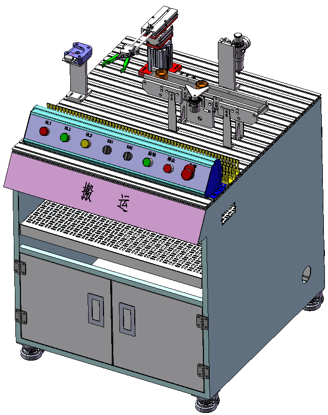 搬運站是接駁上一站的物料放置傳輸線進行下一站的供料,由物料平臺、氣缸機械手、傳輸線等機構組成。氣缸規(guī)格量程:旋轉氣缸:0~180°,雙聯(lián)氣缸:行程:100mm,平行氣夾:缸徑:16mm,不回轉氣缸:行程:100mm,檢測傳感器:磁感式。