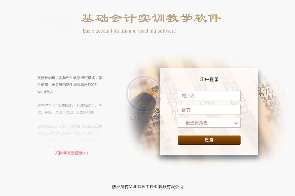 1.軟件按會計教學(xué)課程章節(jié)預(yù)置實訓(xùn)內(nèi)容,既有單項實訓(xùn)又有綜合實訓(xùn),可按章節(jié)形式進行教學(xué),教師可自行調(diào)整章節(jié)順序。 2.B/S結(jié)構(gòu),無用戶數(shù)限制,客戶端不需要安裝...