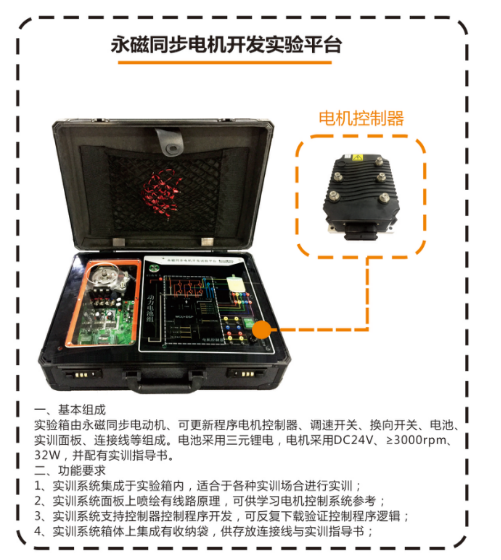 一、產(chǎn)品功能: 基于純電動(dòng)汽車永磁電機(jī)控制系統(tǒng),采用永磁直流電機(jī)、電機(jī)驅(qū)動(dòng)器、智能工況模擬系統(tǒng)、動(dòng)力電池系統(tǒng)、整車控制器系統(tǒng)、組合儀表、系統(tǒng)工作參數(shù)顯...