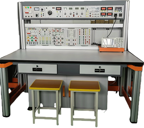裝置由主機(jī)箱、實(shí)驗(yàn)桌、實(shí)訓(xùn)掛箱、獨(dú)立封裝實(shí)訓(xùn)電路模塊、移動矮柜、示波器架、學(xué)生凳等組成。實(shí)訓(xùn)裝置支架與實(shí)訓(xùn)桌可組合、可拆裝。支架與桌腳一體,鋁合金結(jié)構(gòu),實(shí)訓(xùn)掛箱、各實(shí)驗(yàn)?zāi)K可根據(jù)實(shí)驗(yàn)需求自由組合放置。