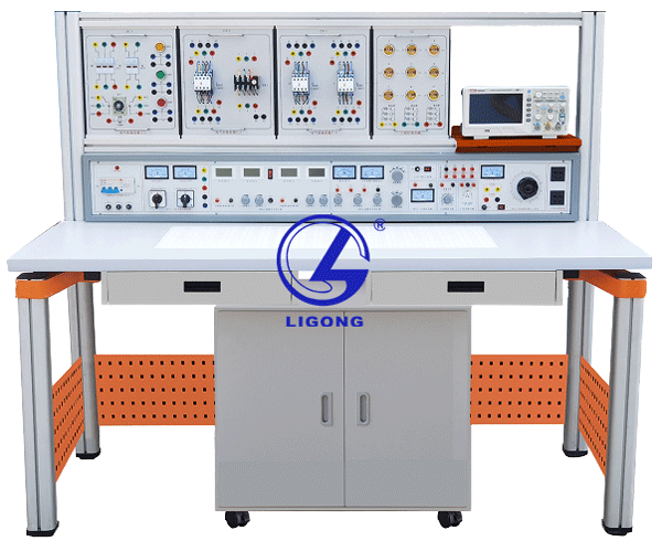 通用電工電子實訓(xùn)裝置,通過實驗教學(xué),使學(xué)生掌握電工技術(shù)方面的基本知識與技能,培養(yǎng)學(xué)生實際操作能力和應(yīng)用技能、培養(yǎng)學(xué)生分析和解決問題的基本能力,為后續(xù)專業(yè)課程打好基礎(chǔ)。電工實驗臺具有較完善的安全保護(hù)措施,較齊全的功能(詳見實驗臺結(jié)構(gòu)簡介)。實驗桌中央配有通用九孔萬能插件板,九孔萬能插件板主體由ABS注塑而成,表面布有九孔成一組相互聯(lián)通的插孔,九孔萬能插件板內(nèi)部內(nèi)嵌126組銅質(zhì)九孔一體成型嵌件。實驗中的弱電模塊必須以獨(dú)立封裝的透明元件盒為單一模塊,元件盒統(tǒng)一都能配合九孔萬能插件板像搭積木一樣的形式自由搭建組合電路,元件盒盒體透明,內(nèi)裝元件直觀性好,盒蓋印刷電路圖防刮耐磨,符號美觀清晰。元件盒盒體與盒蓋采用較科學(xué)的壓卡式結(jié)構(gòu),維修拆裝方便。元器件放置在實驗桌下邊儲存柜內(nèi),大大提高了管理水平,規(guī)劃化程度,大大減輕了教師實驗準(zhǔn)備工作。