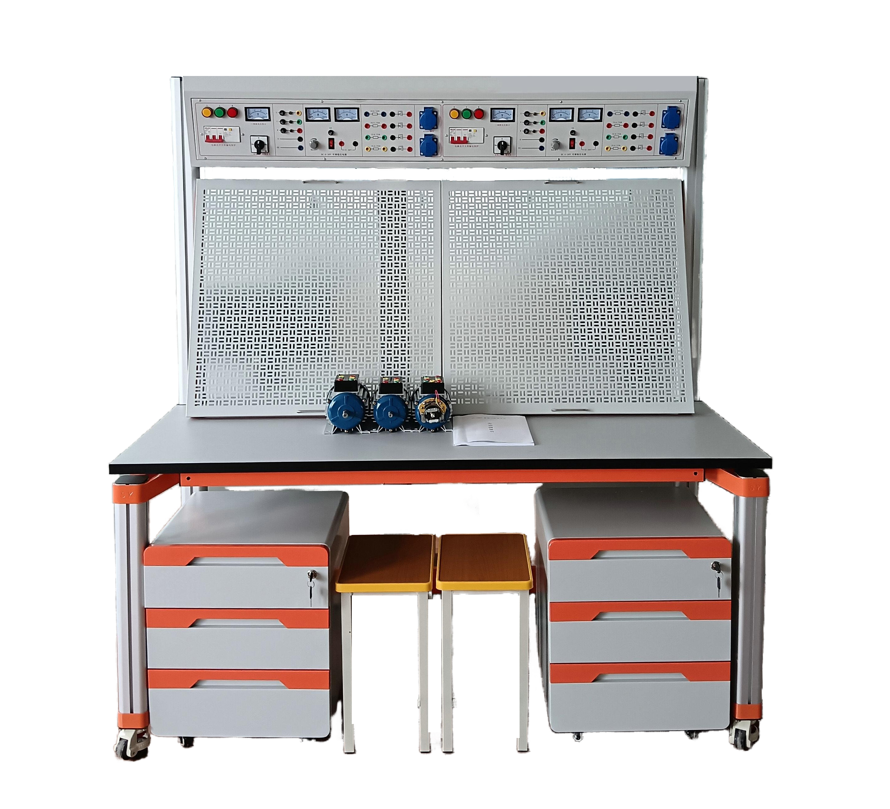 LGWX-X01型 網(wǎng)孔型通用維修電工實(shí)訓(xùn)裝置主要由實(shí)訓(xùn)桌和網(wǎng)孔板組成,為降低實(shí)訓(xùn)裝置的整體高度,實(shí)現(xiàn)實(shí)訓(xùn)室課堂式布置而不擋學(xué)生視線,實(shí)訓(xùn)室整體美觀需求,實(shí)訓(xùn)區(qū)采用斜面式桌面設(shè)計(jì),學(xué)生通過(guò)網(wǎng)孔板布置實(shí)訓(xùn)線路進(jìn)行元器件的布局,安裝接線全部由學(xué)生自行完成,培養(yǎng)學(xué)生的動(dòng)手能力和操作技能。實(shí)訓(xùn)項(xiàng)目可自行確定,選擇相應(yīng)的元器件來(lái)完成實(shí)訓(xùn)項(xiàng)目,也可作為電工考證設(shè)備使用。