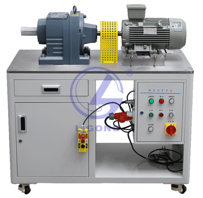 主要由實訓對象、系統(tǒng)工作臺、電器控制箱、機械對中儀和工量具組成。