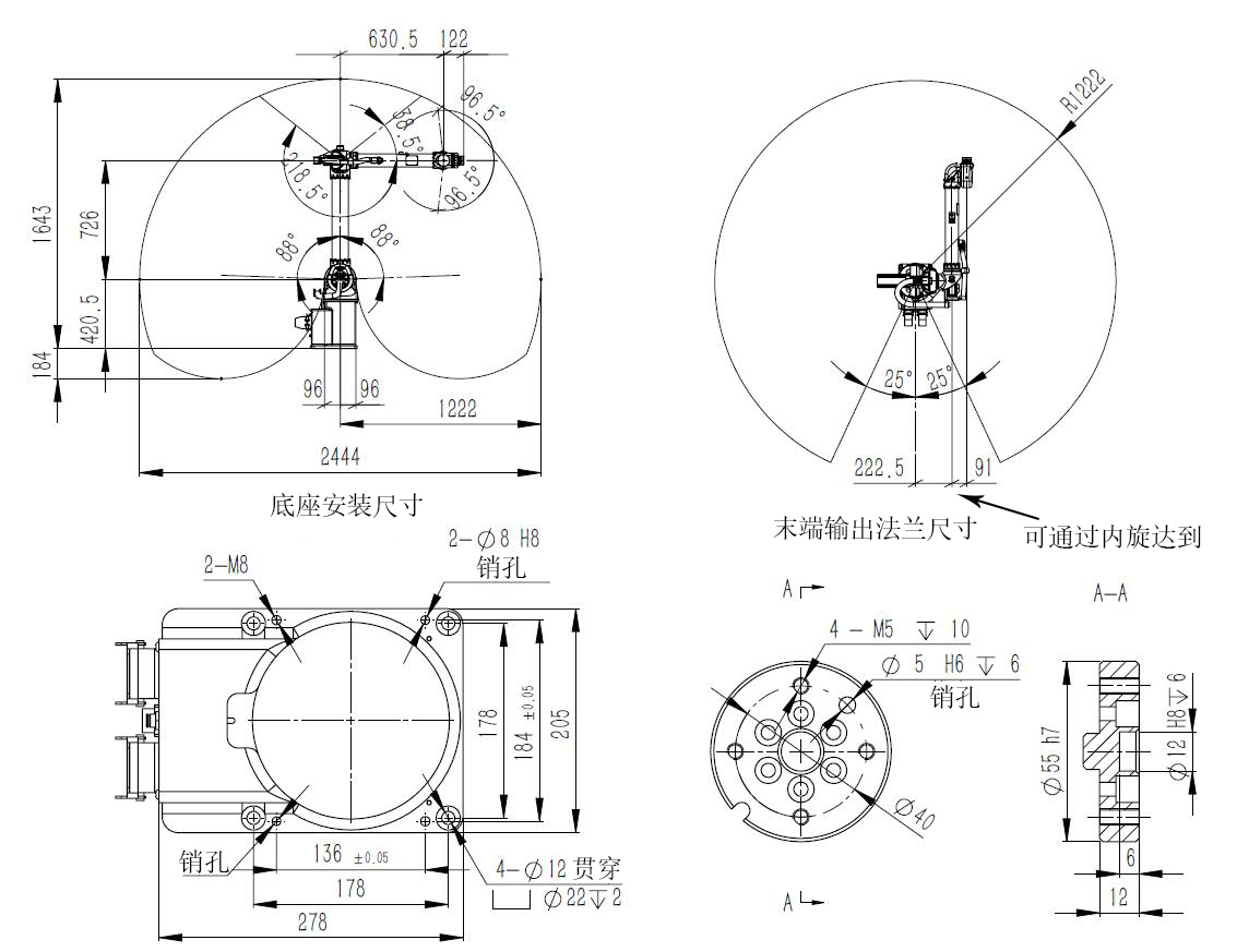 三、工業(yè)機器人運動范圍參數(shù)圖