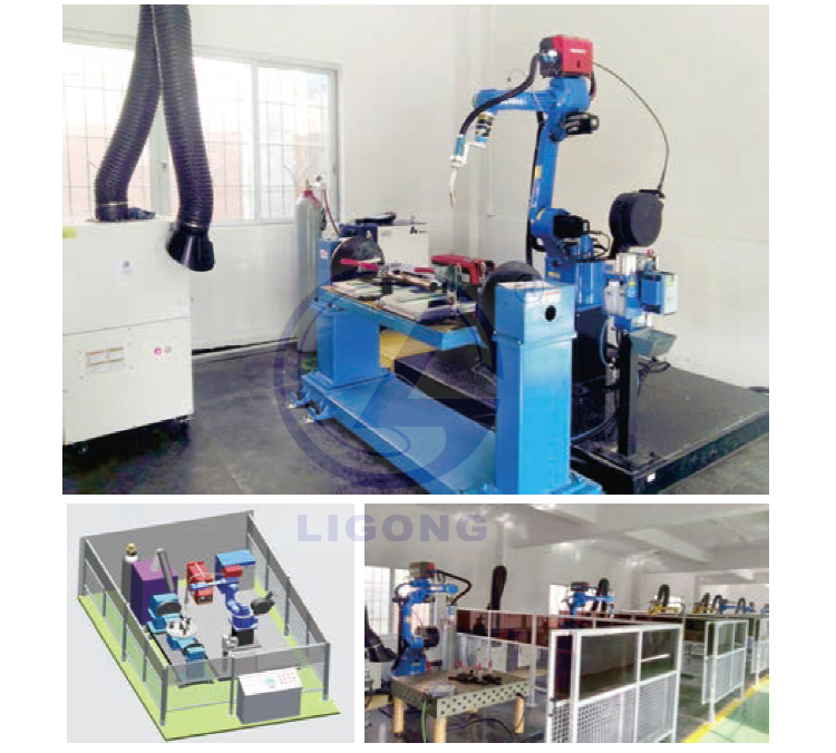 LGH-HJ12型 工業(yè)機(jī)器人焊接實(shí)訓(xùn)平臺由LG-ZN612型工業(yè)機(jī)器人和焊機(jī),送絲機(jī),焊槍及清槍裝置,保護(hù)氣體設(shè)備,工作臺、工裝夾具、變位機(jī),安全系統(tǒng)(圍欄、光柵、自動門、門鎖等),排煙系統(tǒng)等組成。工業(yè)機(jī)器人焊接工作站可以完成不同工件的直縫焊,船型焊,弧形焊等工作:利用計算機(jī)控制下的連續(xù)軌跡或者點(diǎn)位控制、焊接跟蹤技術(shù)、焊接檢測技術(shù)等,實(shí)現(xiàn)生產(chǎn)中各種焊接需求。