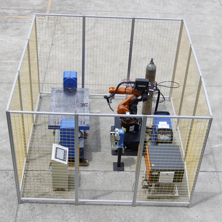 2、該工業(yè)機器人弧焊實訓工作站由工業(yè)機器人、焊接電源、送絲機、焊槍、清槍剪絲站、變位機及工裝夾具、工業(yè)除煙除塵凈化器、安全防護組件及配套設備構成,是利用工業(yè)機器人這一柔性執(zhí)行單元,結合氣體焊工藝實現(xiàn)的實際加工單元,可以完成對板型、管型等零件的焊接加工。在學生充分學習工業(yè)機器人基礎操作后,完全掌握參數(shù)設置、軌跡編程等技能基礎上,結合焊接工藝完成與真實工廠應用相同的實訓項目,了解焊接工作站的構成及維護,縮短崗前培訓過程,提高就業(yè)競爭力。