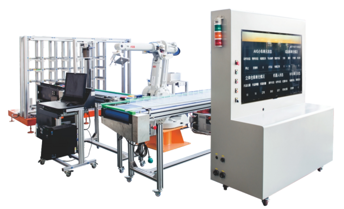 LGY-ZN021A型工業(yè)機(jī)器人智能傳輸分揀控制實(shí)訓(xùn)系統(tǒng)由工業(yè)機(jī)器人作為主體控制對(duì)象,能滿足模擬生產(chǎn)過程中的上料、AGV傳輸、圖像識(shí)別、分揀、入垛等環(huán)節(jié),裝置中包括工業(yè)機(jī)器人、PLC控制系統(tǒng)、AGV小車、皮帶傳輸環(huán)節(jié)、視覺檢測系統(tǒng)、RFID系統(tǒng)、分揀裝置、原材料立體倉儲(chǔ)等單元,同時(shí)設(shè)備加入電子看板系統(tǒng),用來顯示生產(chǎn)環(huán)節(jié)。