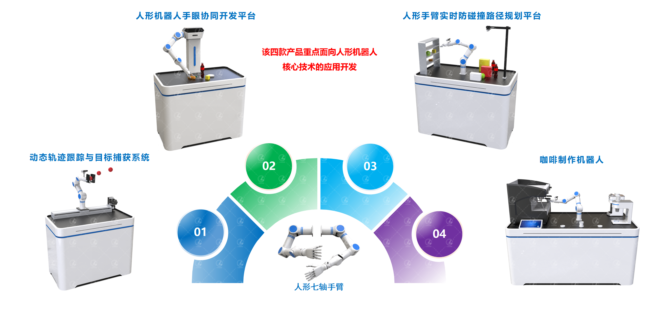人形機(jī)器人在商業(yè)場景中的應(yīng)用和探索越來越廣泛,比如巡檢、配送、問診、接待等,而“咖啡制作”作為一個典型的商業(yè)應(yīng)用,具有廣泛的推廣潛力。本產(chǎn)品采用人形七軸手臂開發(fā),通過打造“咖啡制作”這一高交互性的應(yīng)用場景,可以面向機(jī)器人、自動化及人工智能相關(guān)學(xué)科構(gòu)建“產(chǎn)教研融合”創(chuàng)新平臺。