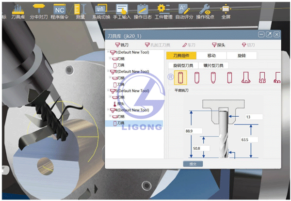 LGS-SX02型 數(shù)控車銑加工一體化創(chuàng)新仿真實訓平臺中的數(shù)控機床、刀具、夾具、工件和CNC控制器采用數(shù)字孿生軟件實現(xiàn),用軟件取代實際機床和相關硬件。數(shù)字孿生軟件克服了數(shù)控加工設備價格昂貴、占地大、更新速度慢等問題,解決了培訓人員多而機床設備少的問題,節(jié)省耗材、節(jié)約用電,也為學校節(jié)省了大量設備購置經(jīng)費,在數(shù)控系統(tǒng)和機床升級時,只需更新軟件,不需更新物理設備,便于更新改造。滿足大批量的教學培訓需求,一舉多得。