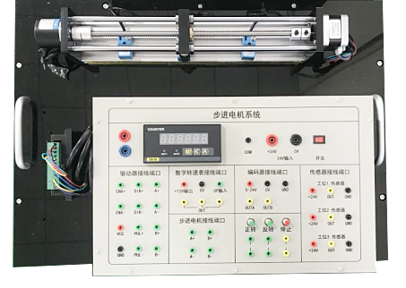 LGBJ-M01型 步進(jìn)電機(jī)實(shí)訓(xùn)模型組成:采用步進(jìn)電機(jī)、驅(qū)動器、小車及絲杠、接線盒、旋轉(zhuǎn)編碼器、脈沖計(jì)數(shù)表、接近開關(guān)等組成。其中旋轉(zhuǎn)編碼器用來做閉環(huán)控制,脈沖計(jì)數(shù)表用來顯示脈沖個(gè)數(shù),讓實(shí)驗(yàn)看起來更直觀。接線盒端子都使用弱電,確保了使用者人身安全。
