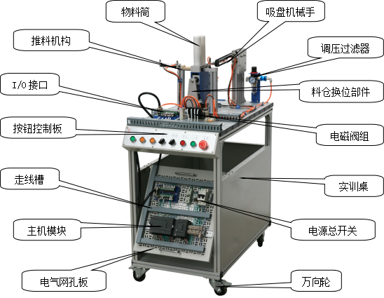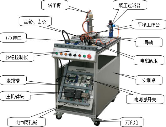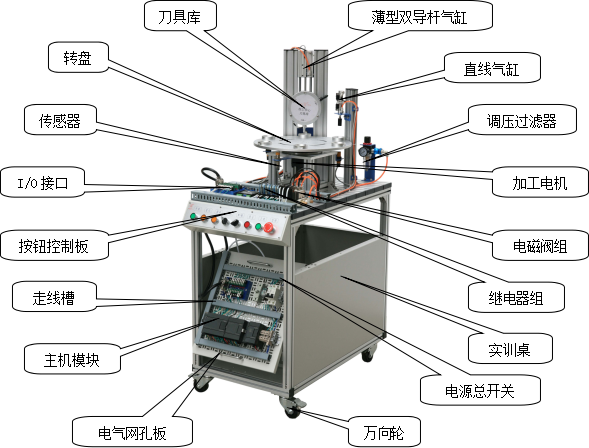 該系統(tǒng)上使用了大量的氣動元件,包括多種電控氣動閥、多種氣動缸、氣動夾爪、真空吸盤、真空發(fā)生器、過濾減速閥等。在學習這些氣動元件時,不但可以單獨學習每一種分離元件,而且還可以在學習時了解各種氣動元件之間,以及氣動元件與其它元件之間,如何配合起來并協(xié)調(diào)進行工作的。