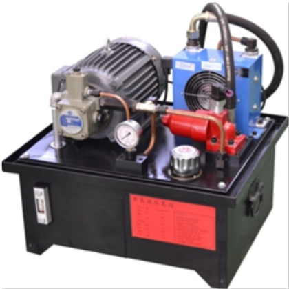 液壓泵站由三相電機、變量葉片泵、單向閥、 風(fēng)冷器、空氣濾清器、油溫油面計、壓力表等組成。液壓泵站控制與實驗臺一體安裝,具有電氣過載、 缺相保護(hù)等功能,專用電器軟啟動器,防系統(tǒng)憋壓裝置,控制系統(tǒng)全部使用國際知名廠商電器。