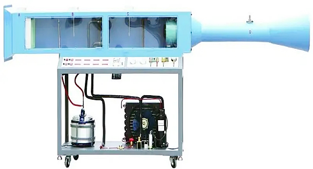 LG-LKR03型 空氣調節(jié)系統(tǒng)模擬實驗臺為直流式空氣處理系統(tǒng),自制冷壓縮機、風冷冷凝器、蒸發(fā)器、風機加濕器、一次電加熱器和風管等組成。裝置整體固定在支架上,裝有腳輪,移動方便,具有冷卻、加熱、加濕干燥的作用,過程的空氣參數(shù)均可測量。可以使學生熟悉集中式空調系統(tǒng)中,直流式系統(tǒng)的空氣處理過程,并得到熱工測量和計算的基本訓練。