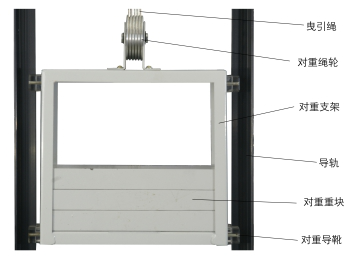 2. 井道部分:包括導(dǎo)軌、對(duì)重裝置、緩沖器、限速器、鋼絲繩張緊裝置、隨行電纜等。見(jiàn)下圖