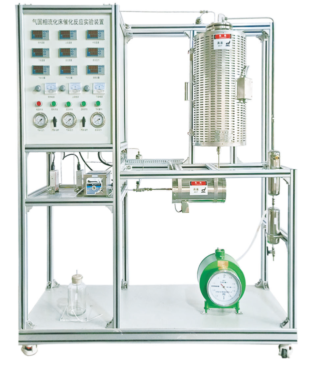 流化床反應(yīng)器、加熱爐、預(yù)熱器、蠕動(dòng)泵、質(zhì)量流量計(jì)、濕式氣體流量計(jì)、壓力表、溫度傳感器、中央處理器、觸摸屏、高品質(zhì)鋁合金型材框架。