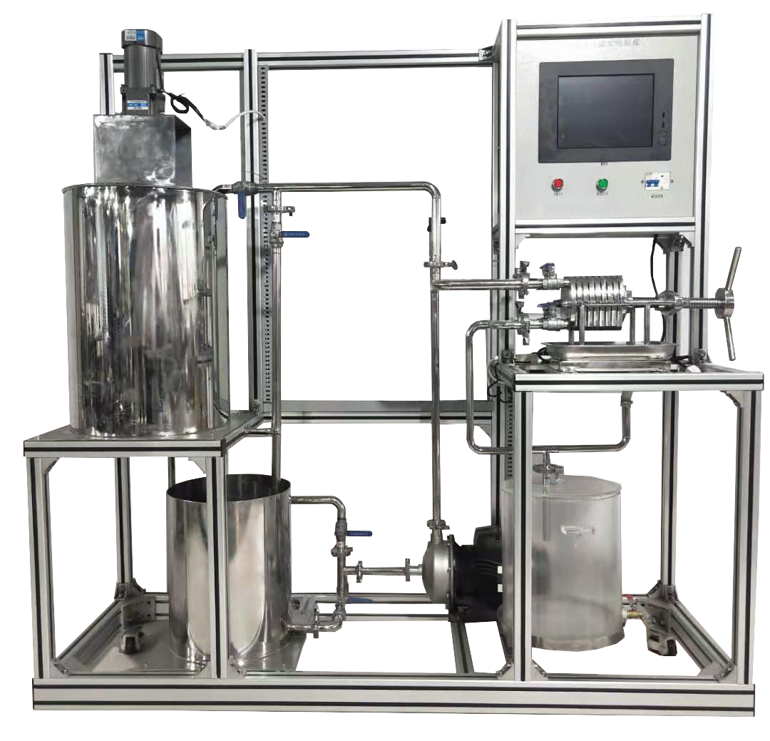 4、該實(shí)驗(yàn)裝置是由過濾板、過濾框組成的小型工業(yè)用不銹鋼板框過濾機(jī),能完整地體現(xiàn)了板框壓濾機(jī)的構(gòu)造和操作流程,采用氣動(dòng)配料、氣動(dòng)攪拌加壓技術(shù),用空氣將物料注入過濾機(jī),工程化概念強(qiáng)。