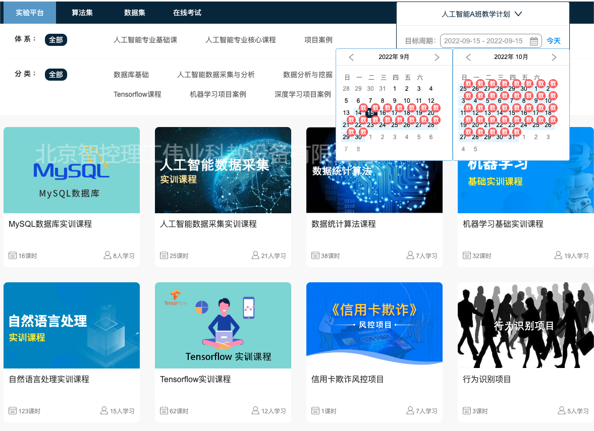 人工智能實訓(xùn)課程資源共計200多個,資源涵蓋了操作系統(tǒng)類、數(shù)據(jù)庫類、編程語言類、統(tǒng)計分析類、機(jī)器學(xué)習(xí)類、神經(jīng)網(wǎng)絡(luò)與深度學(xué)習(xí)類、自然語言處理類、機(jī)器視覺類、智能硬件類課程等諸多方面課程,課程類型包括基礎(chǔ)實訓(xùn)、關(guān)鍵技術(shù)掌握、應(yīng)用創(chuàng)新等,是一個綜合性的學(xué)習(xí)研究平臺;平臺配合專用的資源監(jiān)控系統(tǒng)、課程監(jiān)控系統(tǒng),可實時的監(jiān)控整個平臺的硬件資源負(fù)載以及學(xué)生學(xué)習(xí)的狀態(tài),可幫助教師合理的安排課程及對應(yīng)資源。
