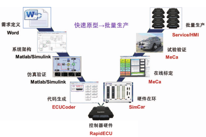 隨著人們對車輛舒適、安全、節(jié)能、環(huán)保等要求的日益提高,汽車智能化和電子化成為未來車輛技術(shù)的主要趨勢,由此對電子控制技術(shù)及開發(fā)者提出了更大的挑戰(zhàn)。對于國內(nèi)電控開發(fā)者而言,在 ECU 開發(fā)和產(chǎn)品化方面存在更大的困難,需要應對更多的挑戰(zhàn)。ECU 主要包括控制器硬件和控制器軟件,其中的控制器軟件又包括基礎(chǔ)軟件與應用軟件,應用軟件決定了車輛駕駛體驗,是車輛及零部件子系統(tǒng)品牌差異化的主要體現(xiàn),是各大廠商自主研發(fā)的核心知識產(chǎn)權(quán),控制器硬件以及基礎(chǔ)軟件,是保證應用軟件良好運行的平臺。在開發(fā)階段和產(chǎn)品化階段,傳統(tǒng)開發(fā)方式一般采用不同的平臺,這些平臺間的移植和驗證都存在較大的難度,需要花費大量的時間、精力以及昂貴的費用。對于剛剛起步的自主品牌在產(chǎn)量和成本的要求下,對于相對復雜的控制系統(tǒng),新產(chǎn)品的產(chǎn)品化幾乎成了難以完成的任務。