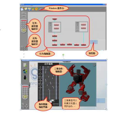 提供動(dòng)作設(shè)定的教學(xué)模仿功能,可在PC上用鼠標(biāo)操作,附具有數(shù)種動(dòng)作實(shí)例的正版光盤,可立即測試運(yùn)作;1.具有24個(gè)自由度,實(shí)際組裝時(shí)雖只有17個(gè)自由度(17ch=17個(gè)伺服馬達(dá)),但主機(jī)板可擴(kuò)增至24個(gè)自由度,也就是說可增加7個(gè)自由度,便于DIY用戶增加其他關(guān)節(jié)機(jī)構(gòu)。