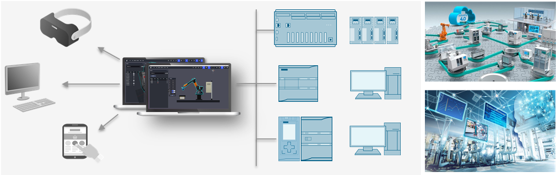 LG-TVP01型 數(shù)字孿生系統(tǒng)能夠從虛擬機(jī)械設(shè)計(jì)、虛擬電氣接線再到虛實(shí)互動(dòng)編程,虛擬調(diào)試以及集成調(diào)試的整個(gè)過程,同時(shí)配置XR互動(dòng)仿真,能夠?qū)崿F(xiàn)多人協(xié)作的沉浸式應(yīng)用,TVP系統(tǒng)具有多種仿真和組合方式,支持半實(shí)物、全虛擬、以及3D互動(dòng)的編程方式。