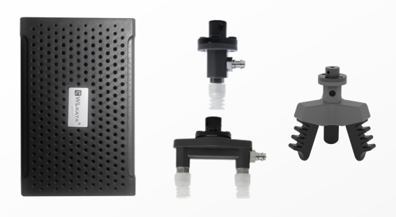 機器人開發(fā)氣動套件包含氣動吸盤、柔爪、氣源。安裝于機械臂末端,實現物品抓取與釋放
