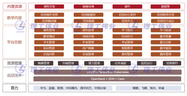數(shù)智化實踐教學(xué)平臺采用B/S架構(gòu),集信創(chuàng)教學(xué)資源、實驗環(huán)境和工具、應(yīng)用實踐和硬件資源為一體的專業(yè)化教學(xué)平臺,全面滿足信創(chuàng)實驗實訓(xùn)需求。