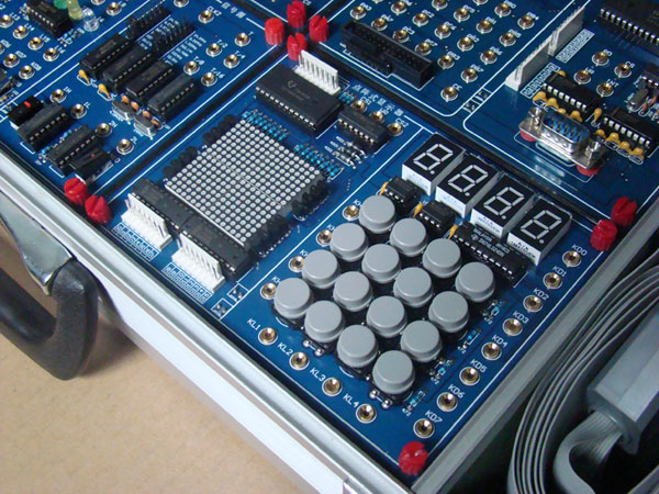 配有4*4鍵盤接口,四位LED八段顯示器,進(jìn)行鍵盤動(dòng)態(tài)掃描;動(dòng)態(tài)顯示等實(shí)驗(yàn);
