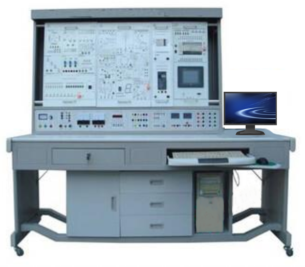 實(shí)訓(xùn)裝置由控制屏、實(shí)訓(xùn)桌、主機(jī)實(shí)訓(xùn)組件、實(shí)訓(xùn)模塊(含豐富的工業(yè)現(xiàn)場(chǎng)設(shè)備模擬實(shí)訓(xùn)對(duì)象)、變頻器掛箱、觸摸屏掛箱、交直流電機(jī)、總線單元、通信模塊、電機(jī)導(dǎo)軌、測(cè)速機(jī)構(gòu)等組成。
