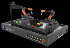 一、產(chǎn)品描述 1、機器人物流自動化工作站由桌面六軸機器人、桌面四軸機器人、傳送單元、弧形立體倉儲單元、Linux主控、視覺套件及工作站底座組成。工作站模擬機器...