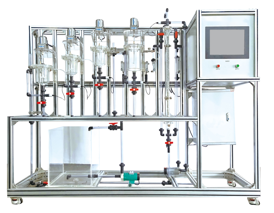 一、裝置功能 1、對比研究釜式和管式反應(yīng)器停留時間分布與反應(yīng)器流動特性。 2、通過多釜串聯(lián)模型參數(shù)對釜式、管式反應(yīng)器停留時間分布以及返混程度做分析研究,模...