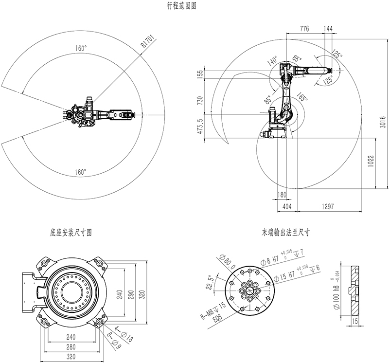8.高負(fù)載: 末端*大負(fù)載30kg,可輕松應(yīng)對碼垛、裝配、打磨及焊接行業(yè)的應(yīng)用市場。