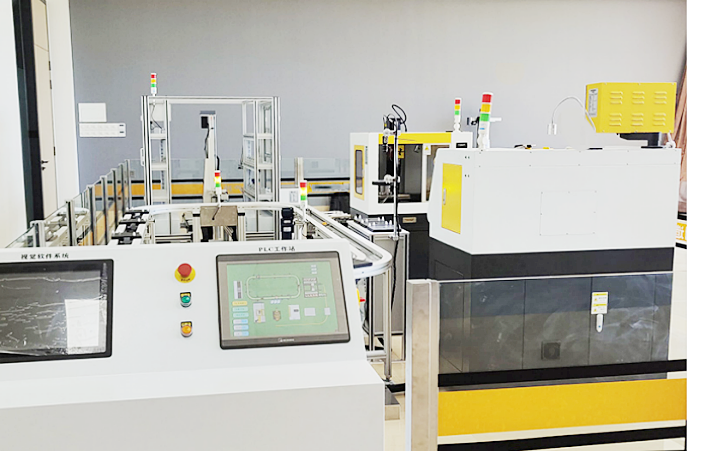 LGY-CX06型 智能制造生產(chǎn)線實訓(xùn)系統(tǒng)是對工業(yè)現(xiàn)場大型設(shè)備進(jìn)行提煉和濃縮的一款小型智能制造生產(chǎn)線實訓(xùn)設(shè)備,專門為職業(yè)院校、教育培訓(xùn)機(jī)構(gòu)等而研制的,它適合機(jī)械制造及其自動化、機(jī)電一體化、電氣工程及自動化、控制工程、測控技術(shù)、計算機(jī)控制、自動化控制等相關(guān)專業(yè)的教學(xué)和培訓(xùn)。融合了數(shù)控機(jī)床加工、光、電、氣,包含了PLC、機(jī)器人、傳感器、氣動、工業(yè)控制網(wǎng)絡(luò)、電機(jī)驅(qū)動與控制、計算機(jī)等諸多技術(shù)領(lǐng)域,對柔性制 造技術(shù)的工作過程進(jìn)行研究,監(jiān)控系統(tǒng)、主控PLC和下位PLC通過網(wǎng)絡(luò)通訊技術(shù)構(gòu)成一個完整的多級計算機(jī)控制系統(tǒng),通過訓(xùn)練,使學(xué)生了解智能制造生產(chǎn)線的基本組成和基本原理,讓學(xué)生全面掌握機(jī)電一體化技術(shù)的應(yīng)用開發(fā)和集成技術(shù),幫助學(xué)生從系統(tǒng)整體角度去認(rèn)識。為信息學(xué)院自動化和電氣工程自動化本科及其控制科學(xué)與工程研究生均提供了實驗和科研的平臺。