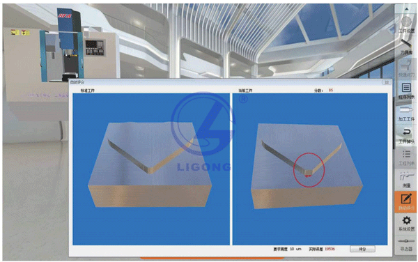 7、能夠進行數(shù)控系統(tǒng)的數(shù)字孿生虛實融合實訓操作和考核, 系統(tǒng)支持對加工結(jié)果進行自動評分。