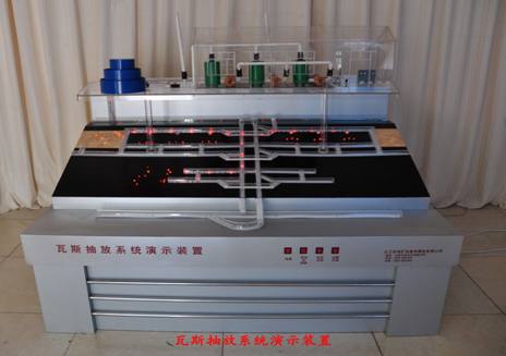 該瓦斯抽放實(shí)驗裝置(適合于一、二、三、四級),反映了煤礦地面抽放系統(tǒng),井下移動抽放系統(tǒng)的布置方式及運(yùn)行方式。顯示不同的抽放方法。