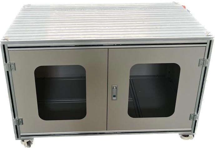 (1)國標(biāo)40*40mm工業(yè)鋁型材搭建,柜體及門板采用鈑金表面噴塑處理,帶腳輪、腳杯;
